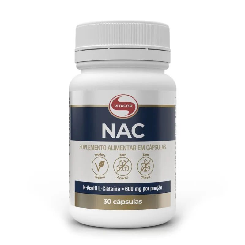 NAC suplemento alimentar fonte de aminoácido N-acetil L-cisteína (NAC), isolado e de origem vegetal. Um aliado para todos os momentos. O aminoácido N-acetil L-cisteína (NAC), é conhecido há anos por sua ação mucolítica, sendo utilizado na indústria farmacêutica na forma de xarope para tratar secreções produzidas pelo pulmão melhorando a respiração5. A atividade da NAC nos pulmões vem sendo estudada inclusive na prevenção contra infecções virais¹. Outro importante fator a considerar da NAC é sua atuação como precursora da glutationa, um poderoso antioxidante. Sua função no organismo pode estar associada a detoxificação, combatendo os radicais livres²³. Quando temos deficiência de antioxidantes no corpo, os impactos dos radicais livres podem afetar nossa saúde. Os radicais livres atacam células saudáveis, por isso podem ser considerados precursores de diversas doenças4. Essa situação é conhecida como estresse oxidativo, uma situação em que os radicais livres estão em proporções maiores no nosso corpo. Essa situação pode ser causada pela má alimentação, sedentarismo, exposição a poluição, uso excessivo de álcool, ou até mesmo uma prática intensa de atividade física, gera impactos no corpo humano5. Como muitas vezes nossa alimentação é irregular e temos hábitos que não apoiam o equilíbrio físico, estados inflamatórios no corpo e estresse oxidativo podem surgir. Além de corrigir nossos hábitos e melhorar a qualidade dos alimentos que ingerimos, a suplementação é um auxiliar para garantir nutrientes necessários5. Benefícios do produto: ?? ?600 mg de N-acetil L-cisteína (NAC) por porção; ?? ?100% N-acetil L-cisteína (NAC) isolada. Diferenciais: ???Zero glúten e açúcar; ?? Produto vegano; ???Praticidade no formato cápsulas. ??Selo de Qualidade VLabor