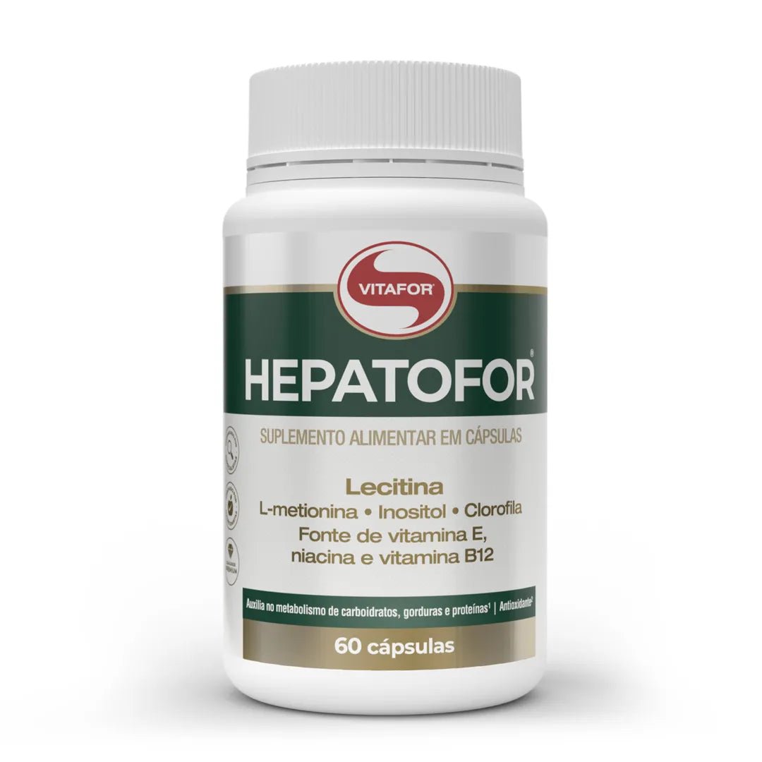 HEPATOFOR® é um suplemento alimentar à base de inositol, L-metionina, clorofila, vitaminas E, B3 e B12. Benefícios do produto: A vitamina E é um antioxidante que auxilia na proteção dos danos causados pelos radicais livres; A niacina contribui para a manutenção da pele, auxilia no metabolismo energético, no metabolismo de proteínas, carboidratos e gorduras e na manutenção das mucosas; A vitamina B12 auxilia na formação de células vermelhas do sangue, no funcionamento do sistema imune, no metabolismo energético, no metabolismo de carboidratos, proteínas e gorduras, no metabolismo da homocisteína e no processo de divisão celular. Diferenciais: Fórmula inovadora: inositol, L-metionina, clorofila, vitaminas E, B3 e B12; Cápsula softgel Não contém glúten.